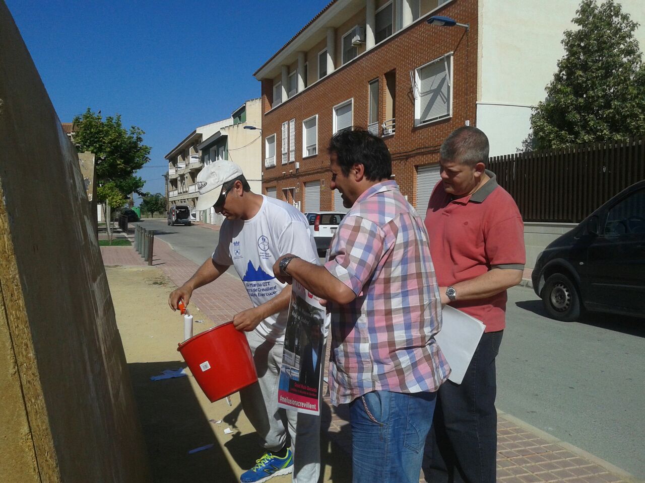 En San Felipe Neri repartieron las propuestas en la plaza y donde se celebraban las paellas. Los magentas se expandieron para llevar a cada casa su publicidad y hablar con los vecinos.