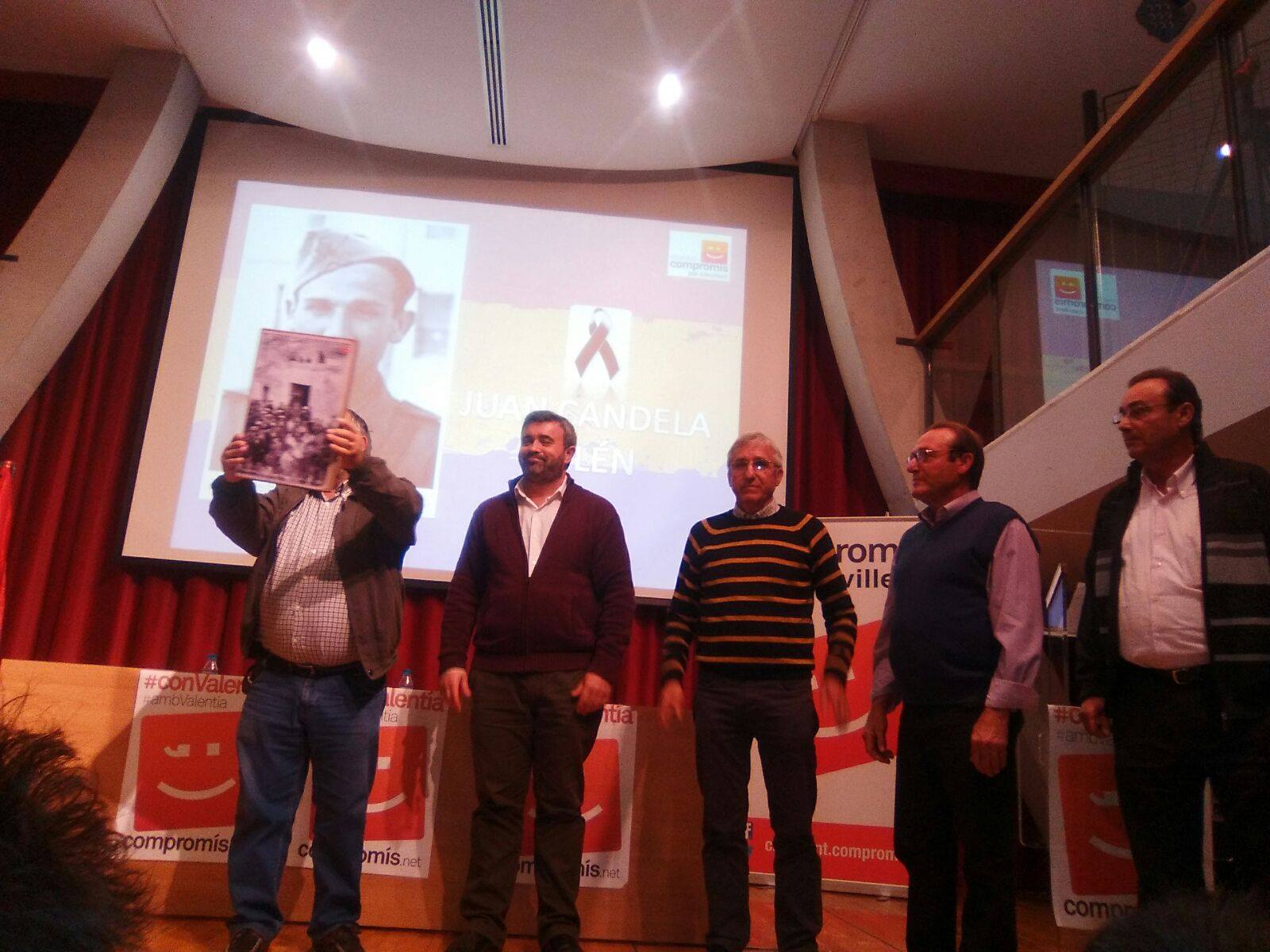 Diego Mas i José Manuel Penalva, realitzaren l’homenatge a Juan Candela, milicià crevillentí que va morir fa pocs dies, i a Vicente Illán Belén, que amb els seus 99 anys va recollir la senya commemorativa. Aquesta part va ser molt emotiva per a tot el públic i especialment per als familiars assistents.