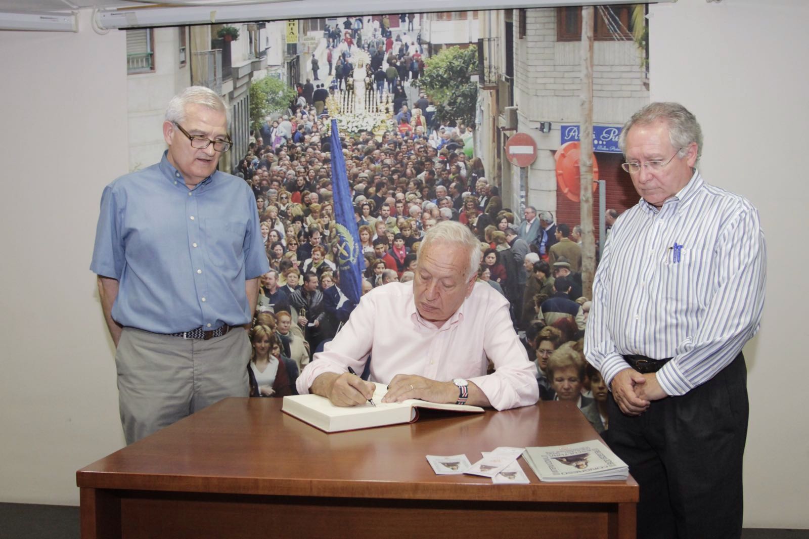 Margallo ha visitado esta tarde la localidad crevillentina, donde ha conocido las sedes de las dos entidades festeras más importantes, como son la Asociación de Fiestas de Moros y Cristianos ‘San Francisco de Asís’ y la Federación de Cofradías y Hermandades de Semana Santa. En ambas sedes ha firmado en el Libro de Honor, y les ha dedicado unas palabras de apoyo a estas dos asociaciones, «por organizar unas fiestas que son el orgullo de Alicante y de España».