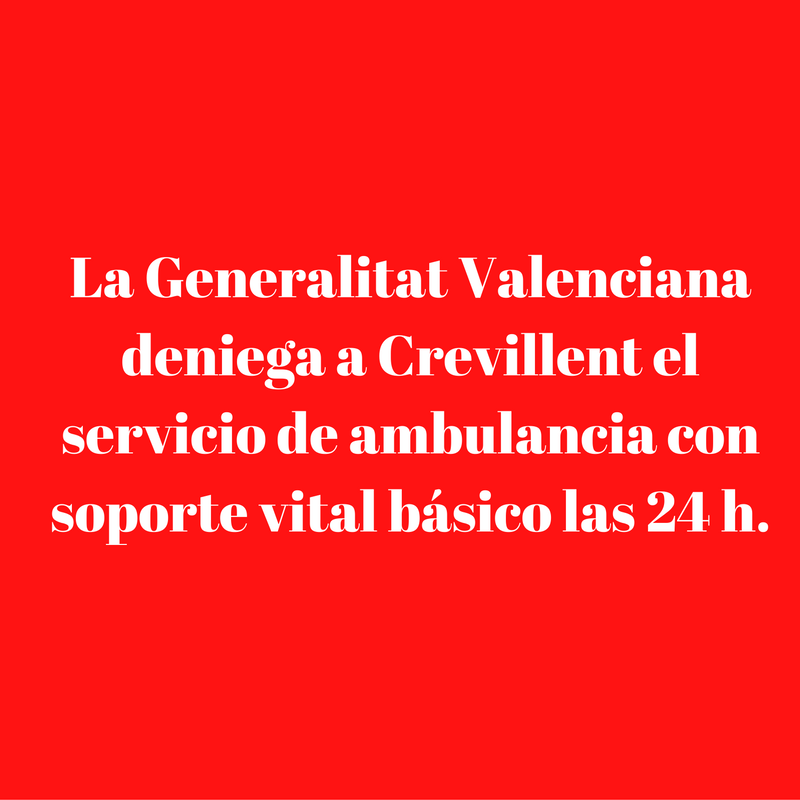 La moción requería al equipo de gobierno del PP que instara a Consellería de Sanidad a reponer el servicio en la población y que de no ser así, se hiciese una contratación desde el consistorio. Esta moción que fue aprobada por todos los grupos de la oposición; COMPROMIS, PSOE y L´Esquerra, de los que sus mismos socios valencianos ahora miran para otro lado a las necesidades de esta población. Consellería que, notifica por escrito, “no procede aumentar el servicio de ambulancia soporte vital básico en Crevillent”