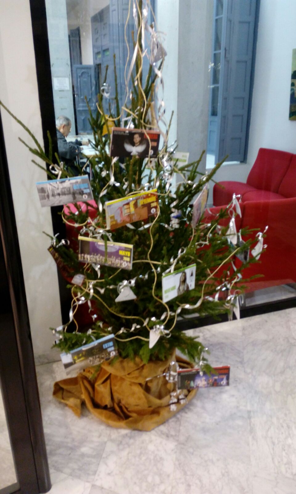 También se ha decorado el hall con un árbol de Navidad adornado con los folletos que todos los meses se editan y que recogen las actividades culturales programadas a los largo de todo el año 2016