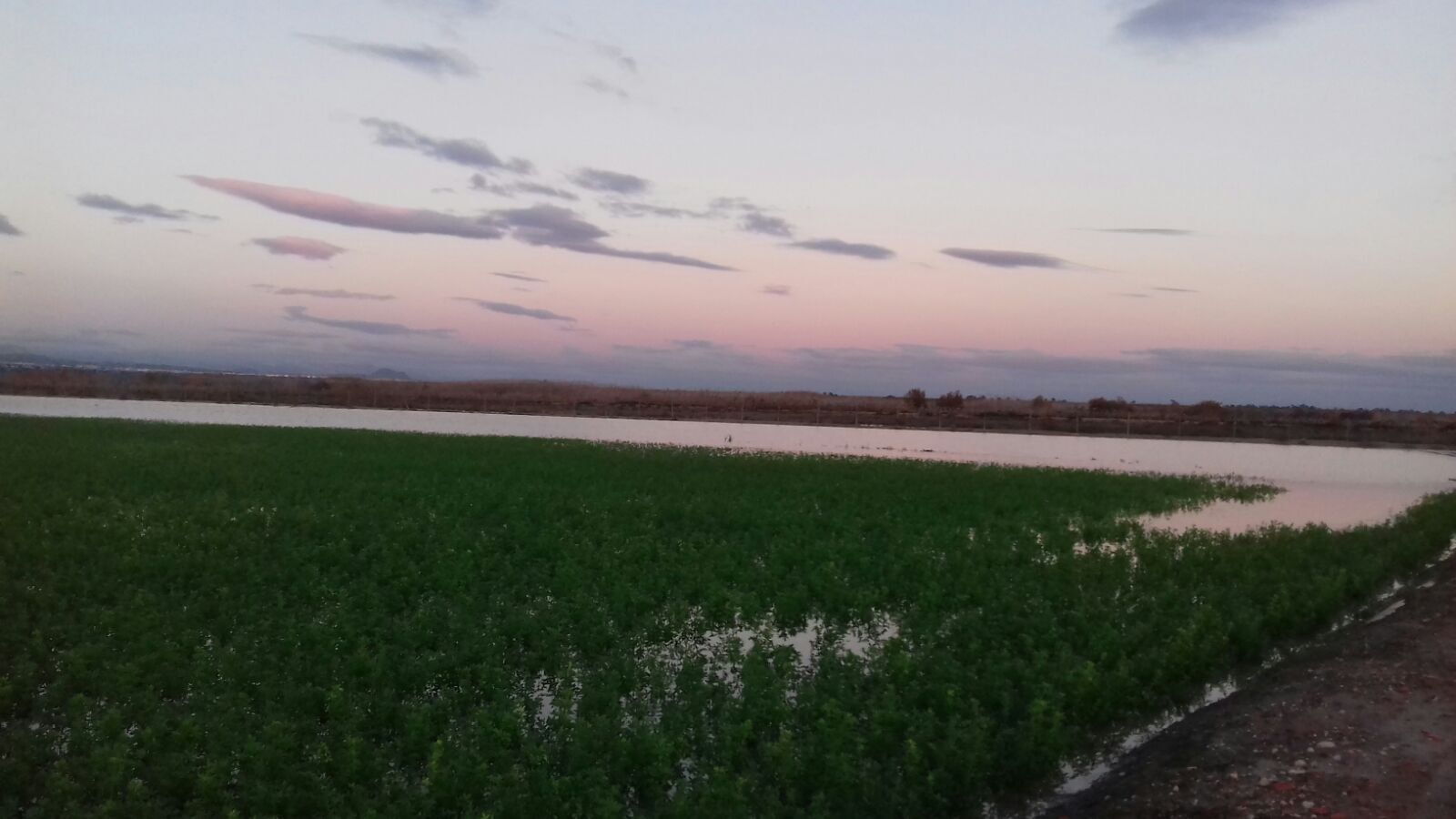 tardará más en desaparecer el agua que en las zonas próximas al río Segura y los perjuicios para los cultivos afectados será importante.