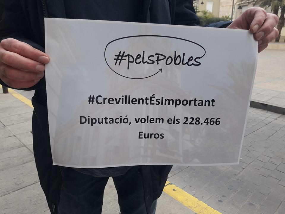 Hoy decidimos manifestarnos a las puertas de los 141 ayuntamientos de la Provincia de Alicante, exigiendo que la Diputación se sume al fondo para que Crevillent reciba los 228.466 euros restantes, que sumados a los 228.466 aportados por la Generalitat supondrían una cantidad de 457.000 euros que podríamos dirigir a la contratación de nuestra ambulancia y a dinamizar económicamente Crevillent.