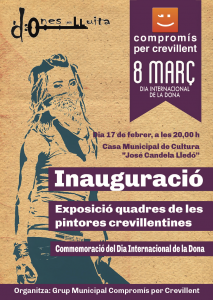 L’exposició s’inaugurarà el pròxim dia 17 de febrer a les 20:00 h. en la Casa Municipal de Cultura, on Compromís per Crevillent, comptarà amb la col·laboració de les pintores crevillentines de les diferents escoles del municipi, a més de dones emprenedores que han treballat a casa les seues obres.