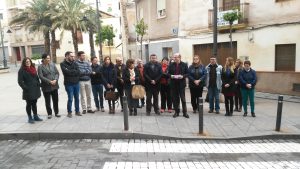 Crevillent (23/02/2017).- El Ayuntamiento de Crevillent ha guardado un minuto de silencio hoy jueves 23 de febrero, a las 12 horas, en la plaza situada frente a la Casa Consistorial en recuerdo de la mujer asesinada el martes en Valencia, en un nuevo caso de violencia de género.