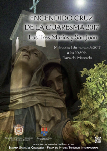 El programa de actos del miércoles uno de marzo “Dimecres de Cendra”, se iniciará a las siete y media de la tarde en la Parroquia de Nuestra Señora de Belén, con la celebración de la Santa Misa e imposición de la ceniza. A su conclusión, y acompañados por la Banda de Clarines y Tambores de la Federación, la comitiva se dirigirá hasta la Plaza Iglesia Vieja, donde se procederá al Encendido de la Cruz, que este año estará a cargo de la Cofradía de las Tres Marías y San Juan.