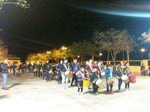Crevillent (07/03/2017).- Alrededor de un centenar de timbaleros asistieron ayer al decimocuarto Inicio de Ensayos de Timbales que tuvo lugar, como es tradicional, en el Paseo del Calvario. Con este acto, la Federación de Cofradías y Hermandades de Crevillent quiere reconocer oficialmente la labor que realizan los jóvenes timbaleros en las procesiones de Semana Santa, ayudando “als agarraos” a marcar el paso.