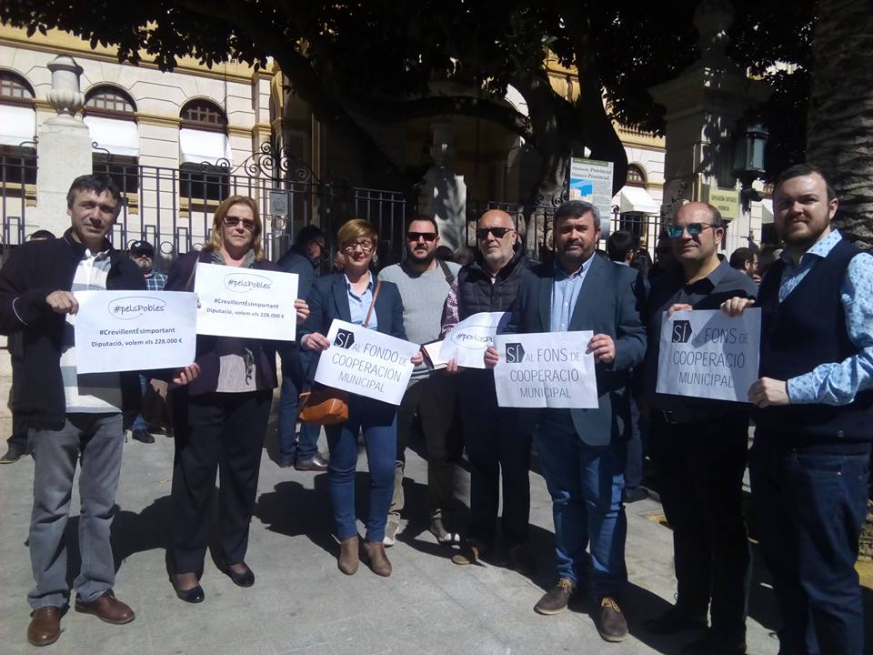 Crevillent (16/03/2017).- El Grupo Municipal Socialista se manifestó ayer a las puertas de la Diputación Provincial exigiendo los fondos que se niegan a Crevillent y a todos los municipios de la Provincia de Alacant.