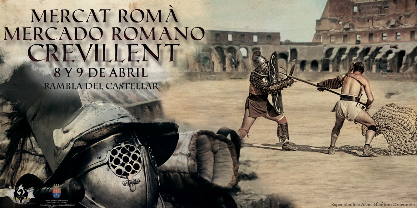 Crevillent (06/04/2017).- La Concejalía de Fiestas del Ayuntamiento de Crevillent ha organizado este fin de semana un Mercado Romano que se instalará en la Rambla del Castellar. El Mercado estará decorado con estandartes y columnas romanas y, a lo largo de este, se podrán contemplar diversas carpas con productos armamentísticos, de artesanía o de alimentación.