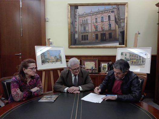 Crevillent (24/04/2017).- El Alcalde de Crevillent, en representación del Ayuntamiento y acompañado por la concejal de Cultura, ha firmado junto al artista, Manuel Balaguer López, la donación de 14 acuarelas que formaron parte de la exposición “Vuelta a los orígenes” que se inauguró el 17 de marzo en la Casa Municipal de Cultura “José Candela Lledó” y ahora pasarán a la Pinacoteca Municipal.