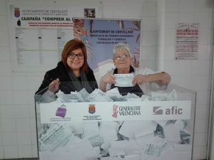 La concejal de Fomento Económico, Laura Gomis , acompañada por la propietaria del puesto Congelados Conchi , han procedido a realizar el sorteo, cuya papeleta premiada ha sido la de la cliente Mª Teresa Ruiz
