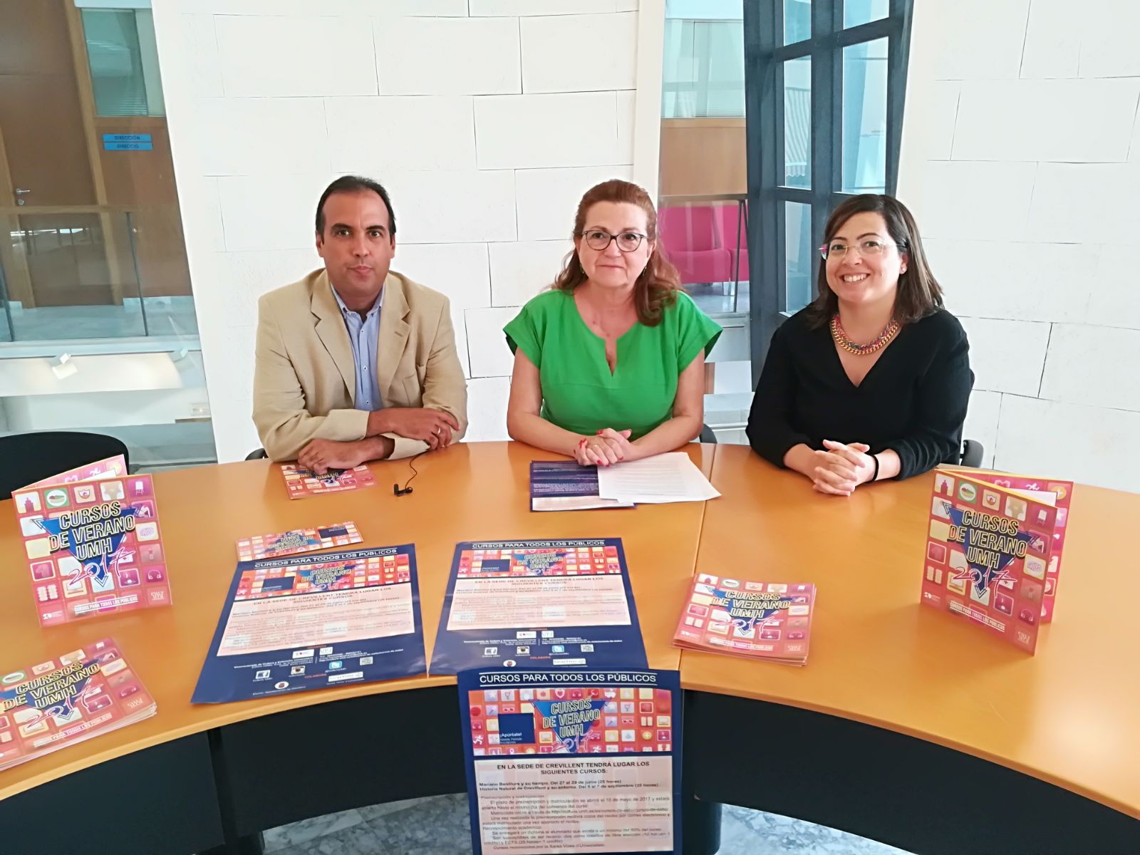 Crevillent (12/06/2017).- La Casa Municipal de Cultura “José Candela Lledó” acogía el pasado viernes la presentación de los Cursos de Verano de la Universidad Miguel Hernández de Elche que se celebran por segunda vez en Crevillent. Al acto acudieron la concejal de Cultura, Loreto Mallol, el director de los Cursos de Verano de la UMH, Enrique Concejero, y la técnico de Cultura, Ana Satorre.