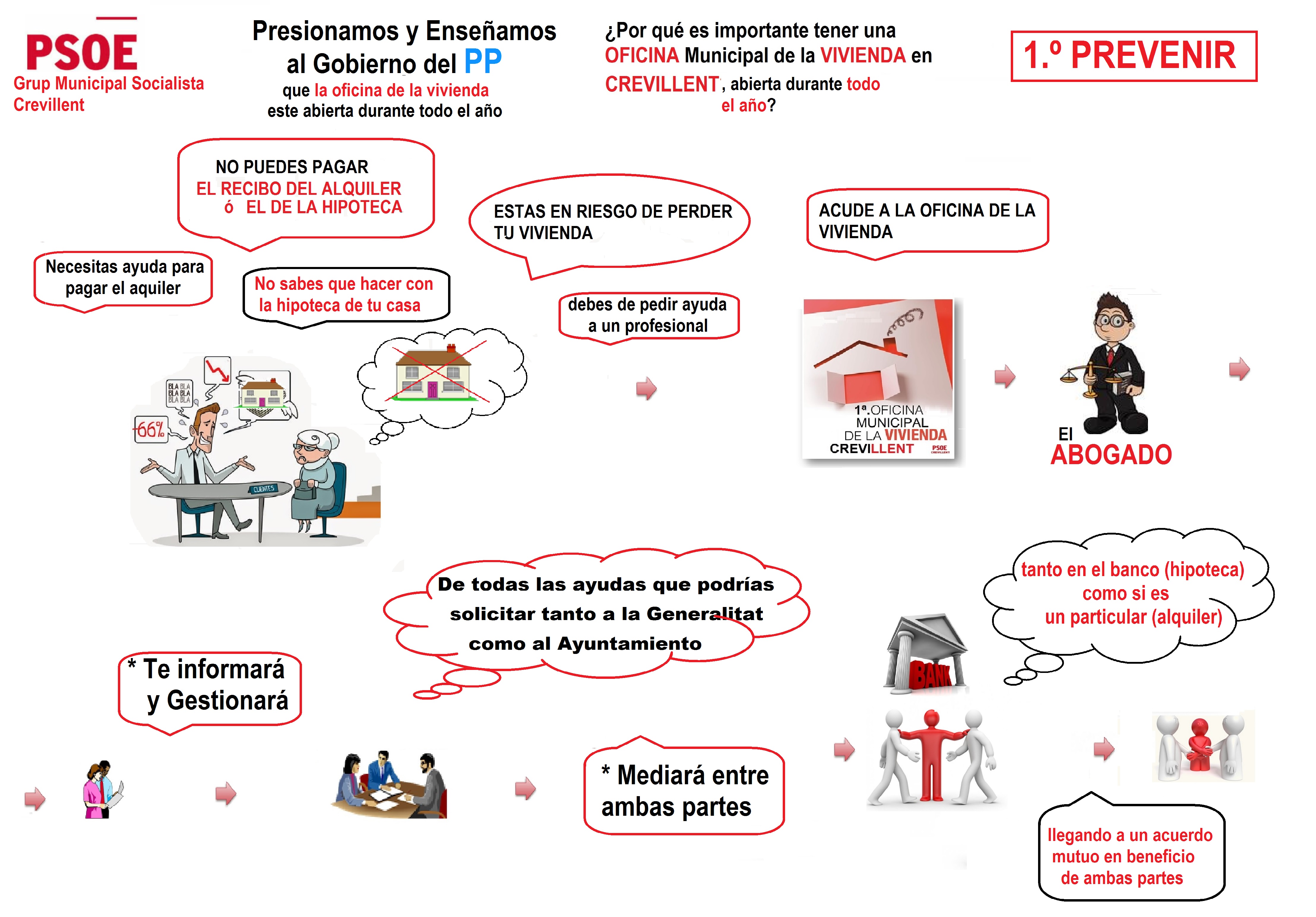 Toda la problemática que vienen sufriendo los vecinos de Crevillent pone una vez más en evidencia la necesidad de que “la Oficina” esté abierta permanentemente y, por otra parte, un estudio riguroso de necesidades y propuestas de actuación y prevención, con los correspondientes planes de empleo (como los que propuso el Grupo Municipal Socialista el pasado año). No podemos olvidar que la solución pasa por la implicación total del gobierno del Partido Popular aunque no creemos que esto esté en mente de la Concejala correspondiente.