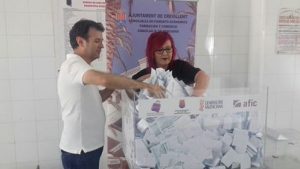 El sorteo público se realizó el viernes en las propia instalaciones del Mercado ,como viene siendo habitual cada último viernes de mes, contando con la participación de una de las placeras y del concejal de Mercados Francisco Verdú.