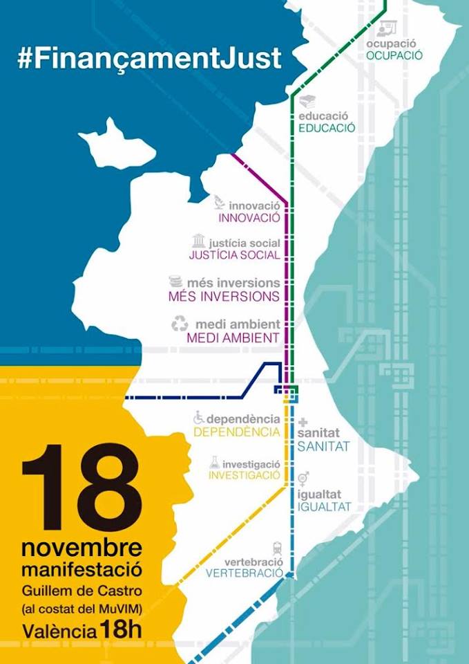 Crevillent a 16 de novembre, des de Compromís per Crevillent fem una crida a participar en la manifestació del pròxim dia 18 a València per a reivindicar un Tracte Just per part del Govern de l’Estat en el finançament de la Comunitat Valenciana.