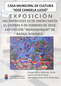 Crevillent ( 09/01/2018).- Este miércoles, 10 de enero, se inaugurará en la Sala de Exposiciones de la Casa Municipal de Cultura “José Candela Lledó” la exposición “Imaginarium” de Rafael Romero.