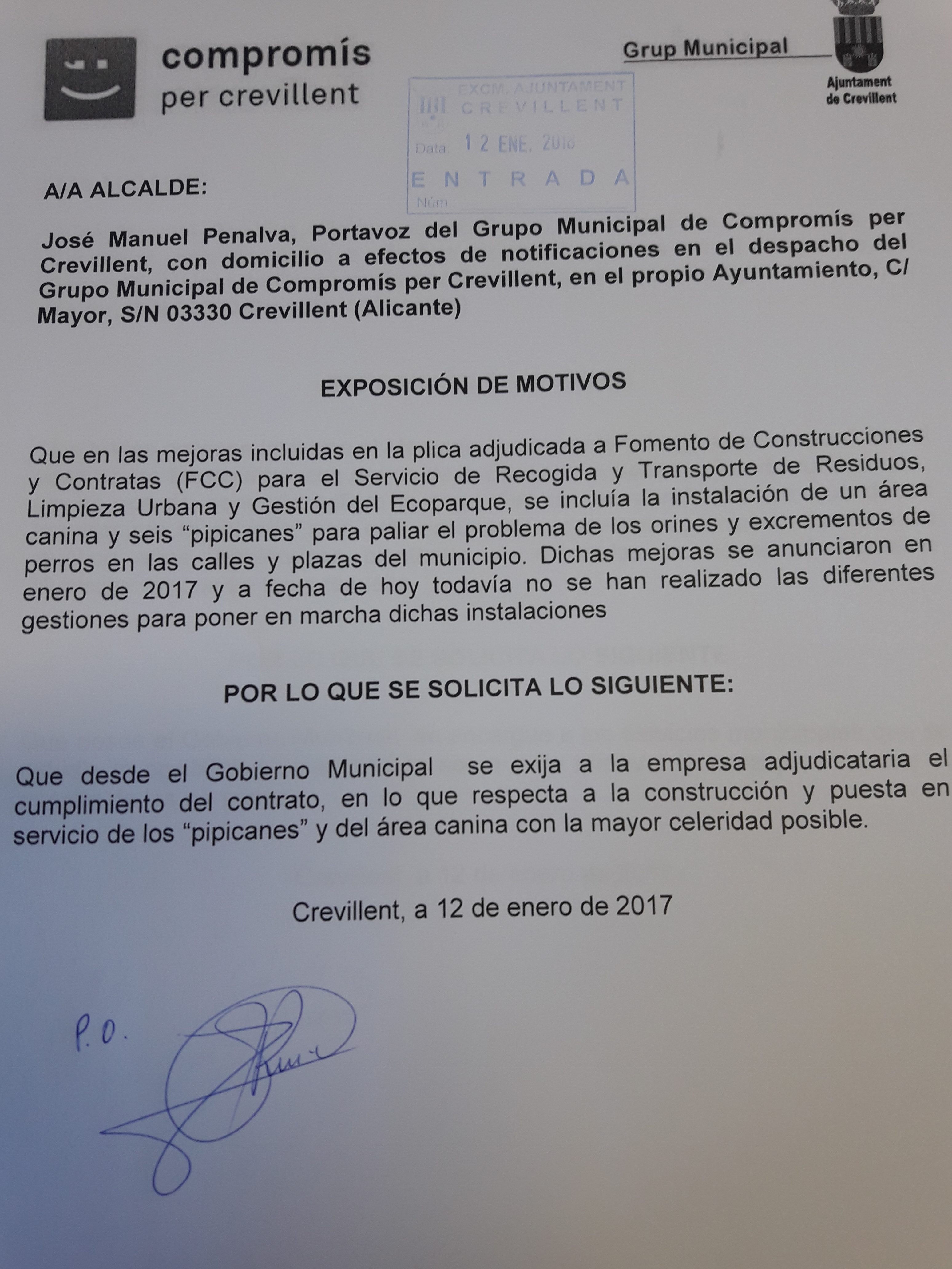Por ello el Grupo Municipal de Compromís ha registrado un escrito en el que se solicita que se le exija a la empresa el cumplimiento del contrato y que ponga en marcha este servicio con la mayor brevedad posible.