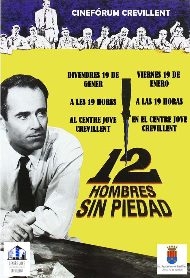 Crevillent ( 17/01/2018).- El Centre Jove “Juan Antonio Cebrián” celebra el próximo viernes una sesión de cinefórum con la película de temática jurídica “Doce hombres sin piedad”.