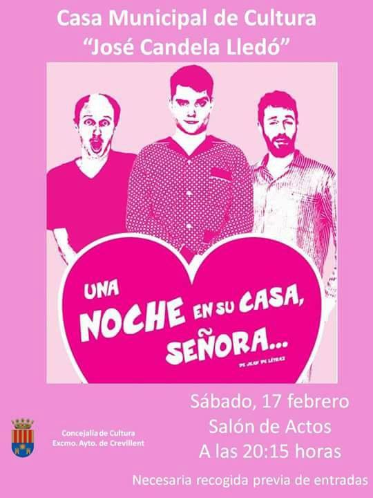 El próximo sábado día 17 de febrero la Casa de Cultura “José Candela Lledó” alcanzará la representación número vigésimo cuarta, englobada dentro de la VII Muestra de Teatro de Crevillent, con la que finalizará esta edición de muestras de teatro.
