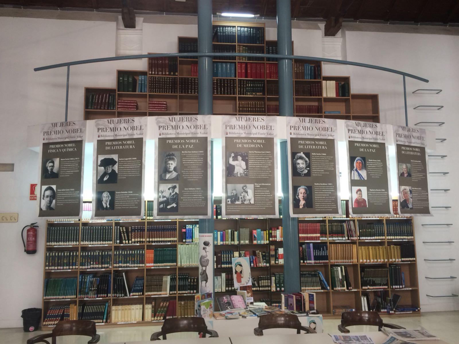 La última actividad relacionada ha sido la colocación, en un lugar destacado de la Biblioteca Pública, de 7 paneles dedicados a 14 mujeres que han sido Premio Nobel.