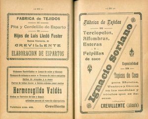 Pero el sector por excelencia es el textil, en el que encontramos además de las fábricas de esteras, alfombras, alpargatas y gorras, a exportadores de esparto.