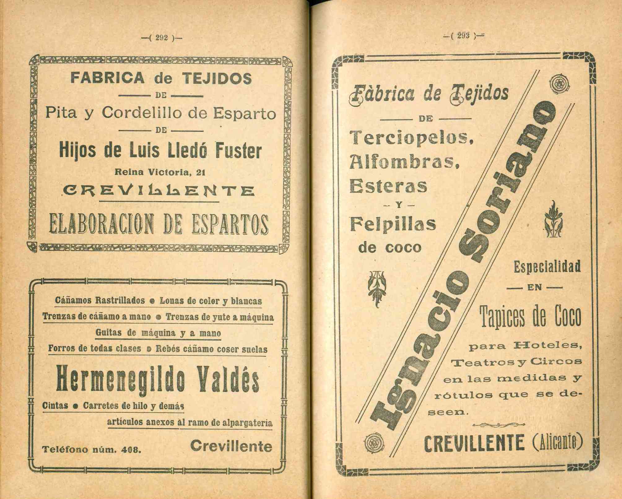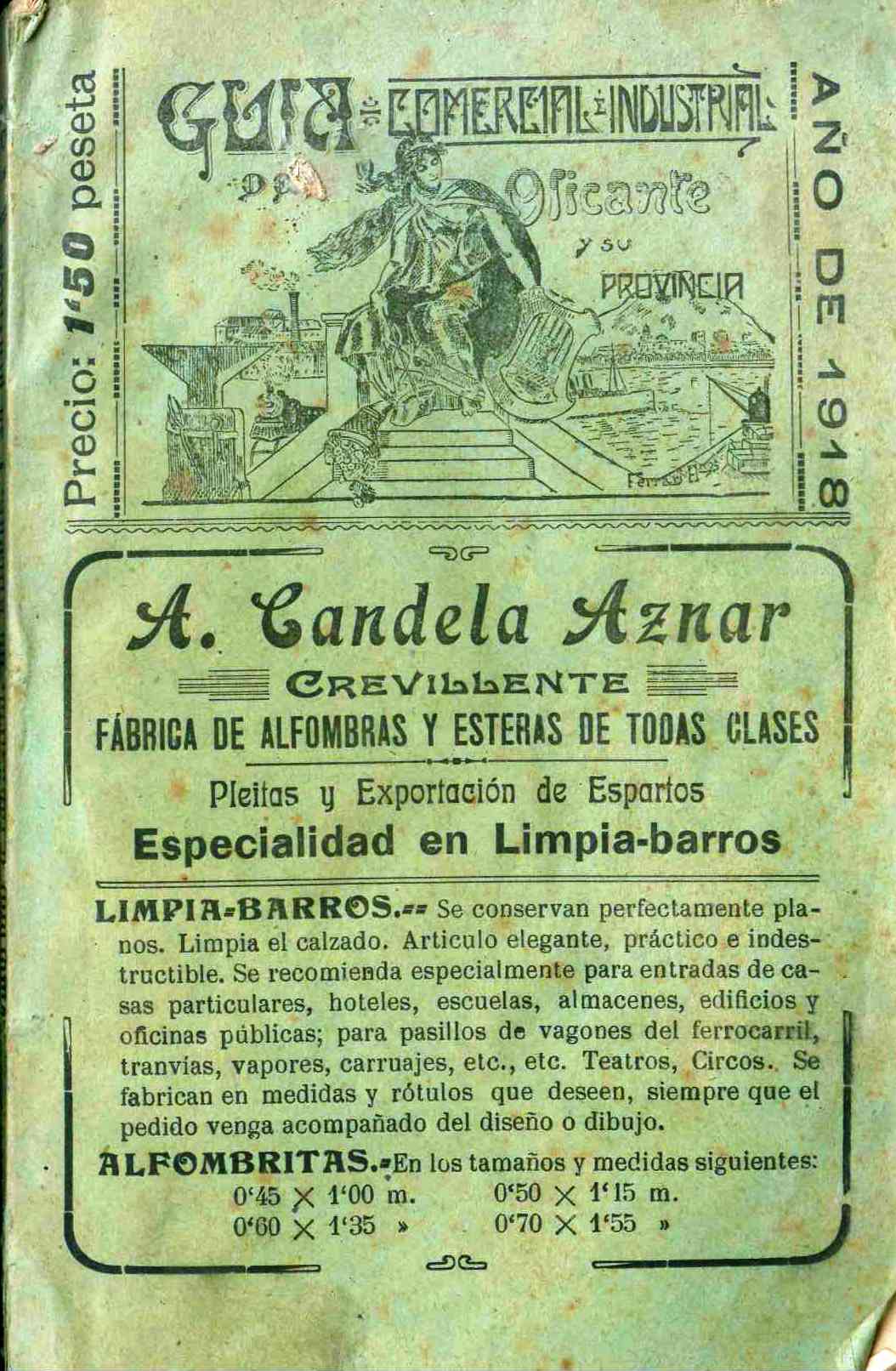Se ha seleccionado la guía del año 1918 porque la portada está dedicada a un comercio crevillentino y porque de la página 279 a la 293 se relacionan comercios, establecimientos e industrias de Crevillent.