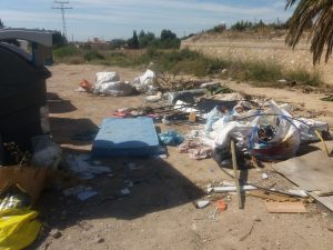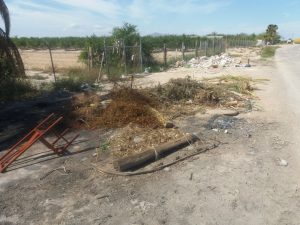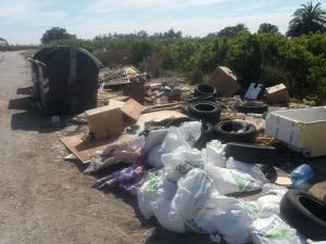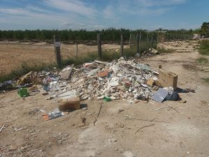 Crevillent a 8 de mayo, el Grupo Municipal de Crevillent ha puesto en conocimiento del Gobierno Municipal, mediante un documento presentado por registro, la existencia de un vertedero incontrolado en el camino de Vereda de Orihuela, en la zona de la Partida del Derramador, un vertedero en el que se acumula gran cantidad de basura, incluso contaminantes tóxicos como neumáticos, materiales de obra, entre otros.