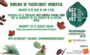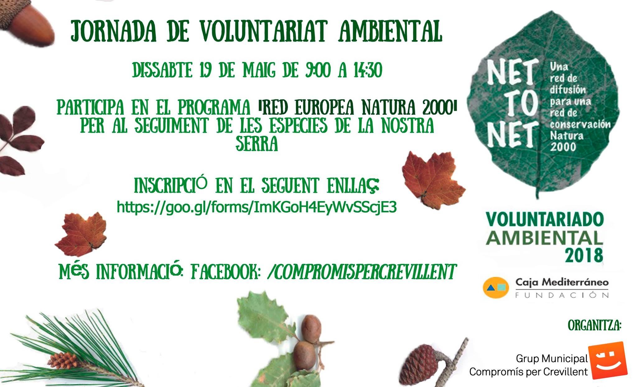 Voluntariat Ambiental Net to Net. Una xarxa de difusió per a una xarxa de conservació Natura 2000, és el projecte que s’està impulsant des de la Fundació Caja Mediterráneo i compta amb el suport del Ministeri d’Agricultura i Pesca, Alimentació i Medi ambient a través de Fundació Biodiversitat. És una activitat dirigida principalment per a estudiants de secundària, batxillerat, cicles formatius, universitaris i joves interessats, però també poden participar diferents grups que vulguen col·laborar. Per al que s’ha posat a la disposició dels interessats el següent correu electrònic per a sol·licitar informació i la inscripció dels grups: medioambiente@cajamediterraneo.es