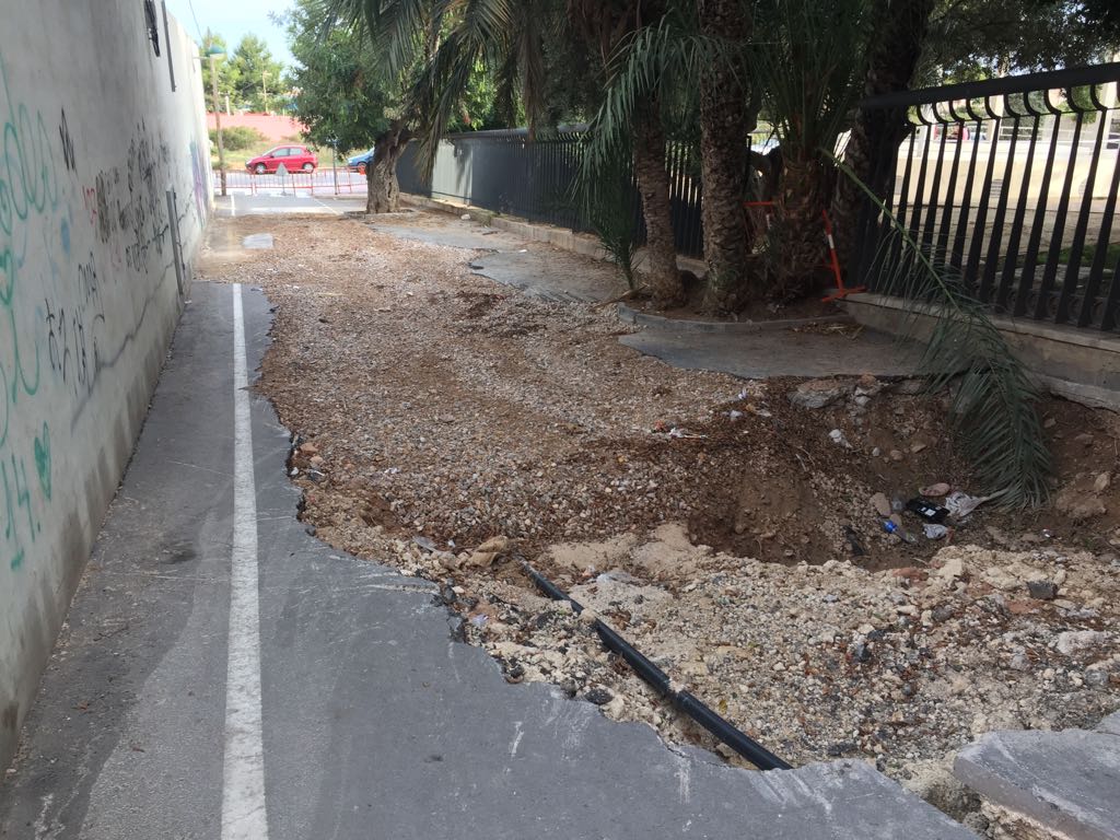 Crevillent, 12 de juny. Davant la falta d’actuació per part del Govern Municipal del Partit Popular, el Grup Municipal de Compromís per Crevillent ha presentat un escrit per registre referent a la situació en la qual es troba, des de fa diversos mesos, la travessia entre els carrers Anselmo Mas, i Fraternitat, el carreró que transcorre entre el Parc de Ronda Sud, i el Col·legi Mestra Pilar Ruiz, ja que es troba tallat des de fa mesos amb el paviment alçat i una clot obert pel que sembla per a la reparació d’alguna canalització.