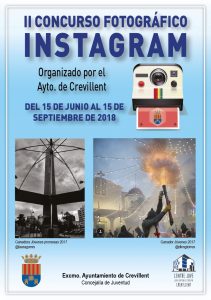 - Subir una fotografía de cualquier paisaje, rincón, monumento o sitio emblemático de Crevillent a tu cuenta de instagram utilizando el hashtag #coneixentcrevillent y etiquetando a la cuenta @centrejovecrevillent
