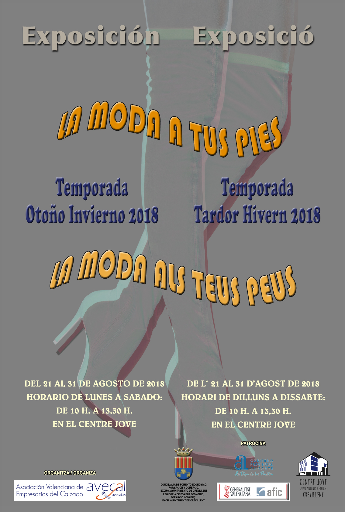 Crevillent (21/08/2018).- El Ayuntamiento de Crevillent, a través de la Agencia de Desarrollo Local y junto a la Asociación Valenciana de Empresarios del Calzado, AVECAL, presentan mañana la exposición “La moda a tus pies”. La muestra será inaugurada a las 10.00 horas en el Centre Jove “Juan Antonio Cebrián”, y en ella se presentan las tendencias del calzado de la próxima temporada otoño-invierno 2018 de firmas de la provincia.