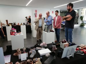 Crevillent (22/08/2018).- El Segundo Teniente de Alcalde, Manuel Moya y el responsable de Comercialización e Internacionalización de la Asociación Valenciana de Empresarios del Calzado (AVECAL), Joaquín Marco, junto a miembros de la Corporación Municipal, han inaugurado esta mañana en  el Centre Jove “Juan Antonio Cebrián”,  la exposición “La moda a tus pies” de AVECAL.
