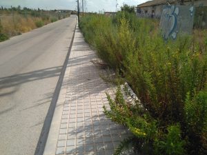 En este escrito Compromís hace referencia a los accesos que van desde el barrio de la Estación al Colegio Puig Jover que se encuentran completamente invadidos por los matorrales, de tal manera que hay tramos en que la acera es intransitable, lo que obligará a los niños y niñas a circular por la carretera.