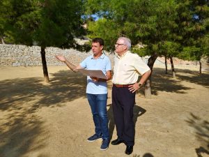 Crevillent (01/10/2018).- El Alcalde de Crevillent, César Augusto Asencio, y el concejal de Servicios, Francisco Verdú, han visitado esta mañana la zona norte de la Rambla del Castelar donde se va a instalar un área de esparcimiento canino, una zona de juegos infantil y un gimnasio al aire libre.