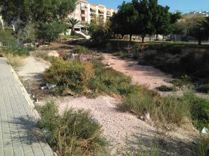 En l’escrit que presenta el Grup Municipal de Compromís, es descriu la situació de total abandó, sense neteja, sense tancar, ple de matolls i brutícia de tot tipus, al costat d’una zona de jocs infantils, que a més de la insalubritat, i la imatge deplorable que projecta, pot suposar un perill pels desnivells pronunciats sense cap tipus de tanca ni protecció.