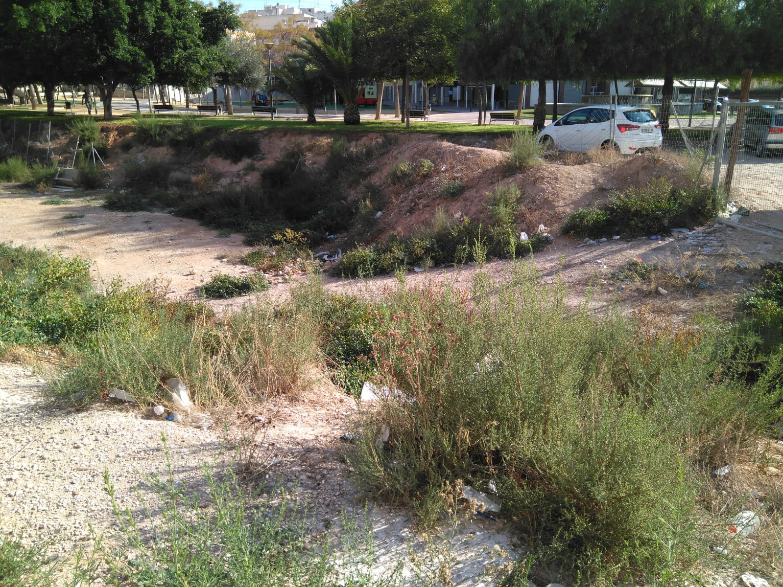 En el escrito que presenta el Grupo Municipal de Compromís, se describe la situación de total abandono, sin limpieza, sin vallar, lleno de matorrales y suciedad de todo tipo, junto a una zona de juegos infantiles, que además de la insalubridad, y la imagen deplorable que proyecta, puede suponer un peligro por los desniveles pronunciados sin ningún tipo de valla ni protección.