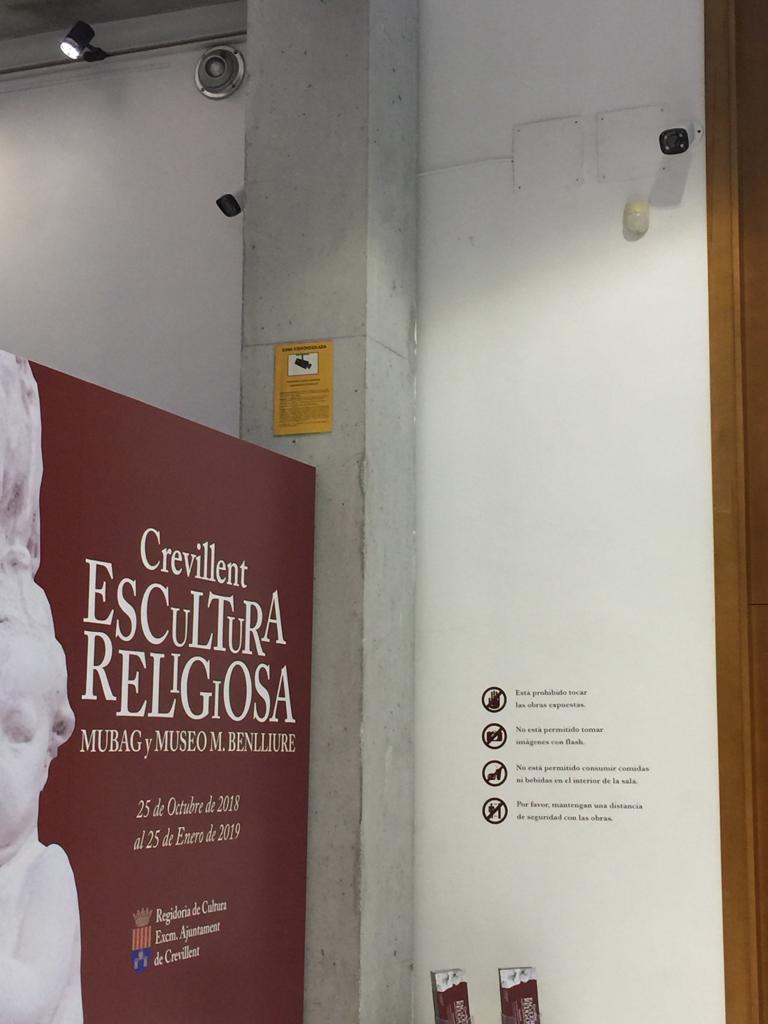 Para la exposición de Escultura Religiosa que se puede visitar en la sala de exposiciones temporales de la primera planta, se ha instalado un circuito cerrado de CCTV, es decir de videovigilancia, cuyas imágenes están controladas por la Policía Local.