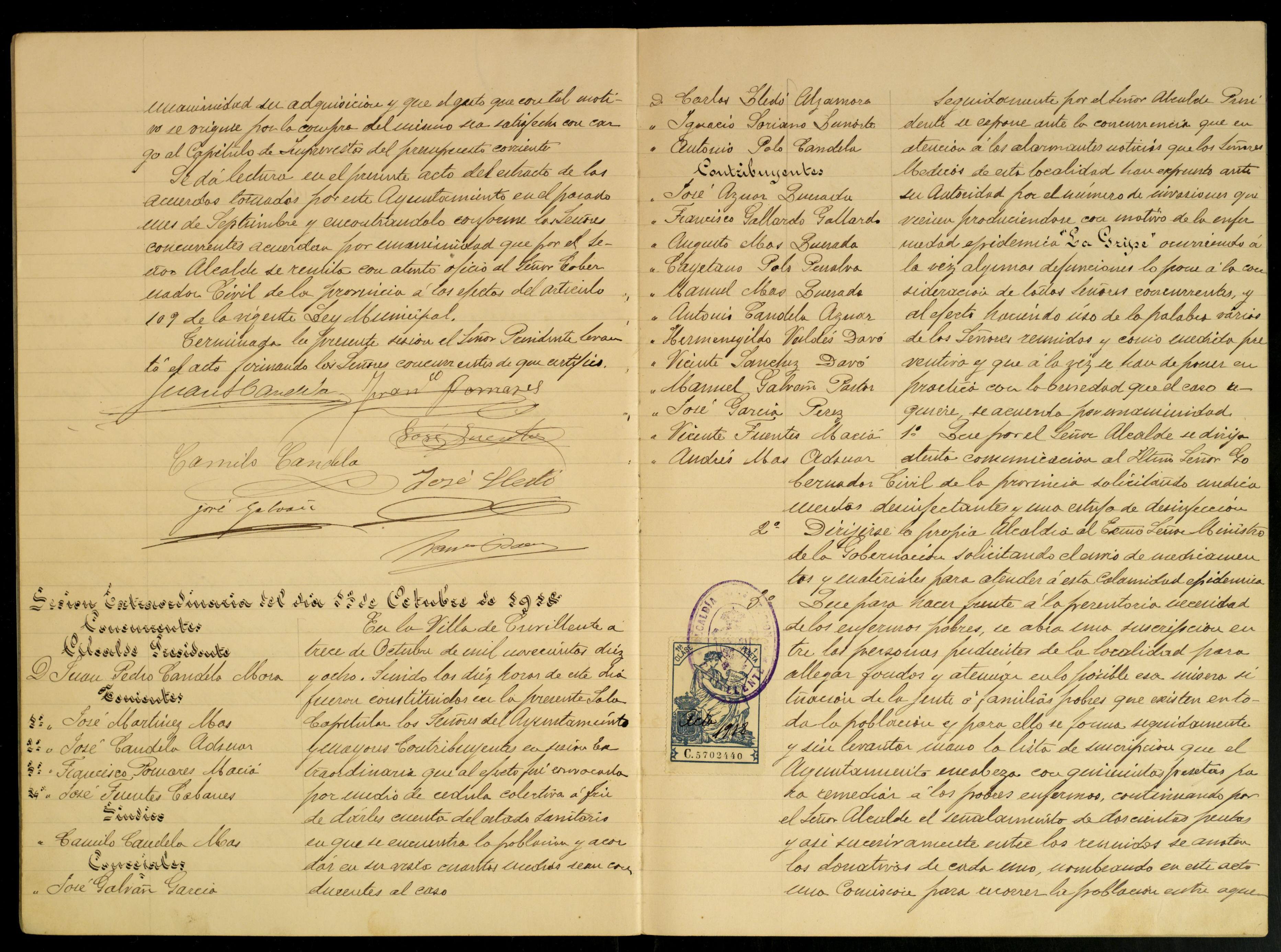 Crevillent ( 10/12/2018).- El documento destacado del mes de diciembre del Archivo Municipal “Clara Campoamor” se refiere al pleno celebrado en 1918 con motivo de la epidemia de gripe en Crevillent. Este documento, perteneciente al Fondo Municipal, refleja las graves circunstancias que vivió nuestra localidad con la epidemia de gripe y la rápida respuesta del Consistorio para ayudar a los más débiles, gracias a la voluntad de las familias con mayores recursos. Los efectos de la gripe, no obstante, fueron mucho mayores que en Elche y Santa Pola, a pesar de las medidas tomadas. Hasta la década de 1921-1930 no se alcanzó un saldo vegetativo positivo en Crevillent, al aumentar la natalidad.