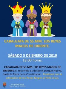 La Concejalía de Fiestas se ha preparado para recibir a los Reyes Magos durante la tarde del 5 de enero, a partir de las 18,00h que llegarán a Crevillent acompañados de todo su séquito real.