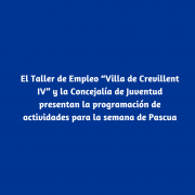 Crevillent ( 14/02/2019).- La Concejalía de Juventud informa que se van a realizar algunas actividades especiales para mañana viernes 15 de febrero en el Centre Jove “Juan Antonio Cebrián”, dado que no es lectivo en centros educativos de la localidad.