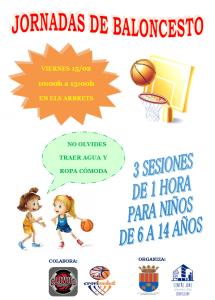 El taller de baloncesto va dirigido a niños y niñas de 6 a 14 años y se desarrollará en el Pabellón Els Arbrets de 10.00 a 13.00h. El objetivo de esta actividad es ayudar a mejorar la coordinación y el trabajo en equipo. Para poder participar en el mismo, tan sólo se precisa pasar por la conserjería del Centre Jove y apuntarse en un listado, con el fin de asegurar una mejor organización.