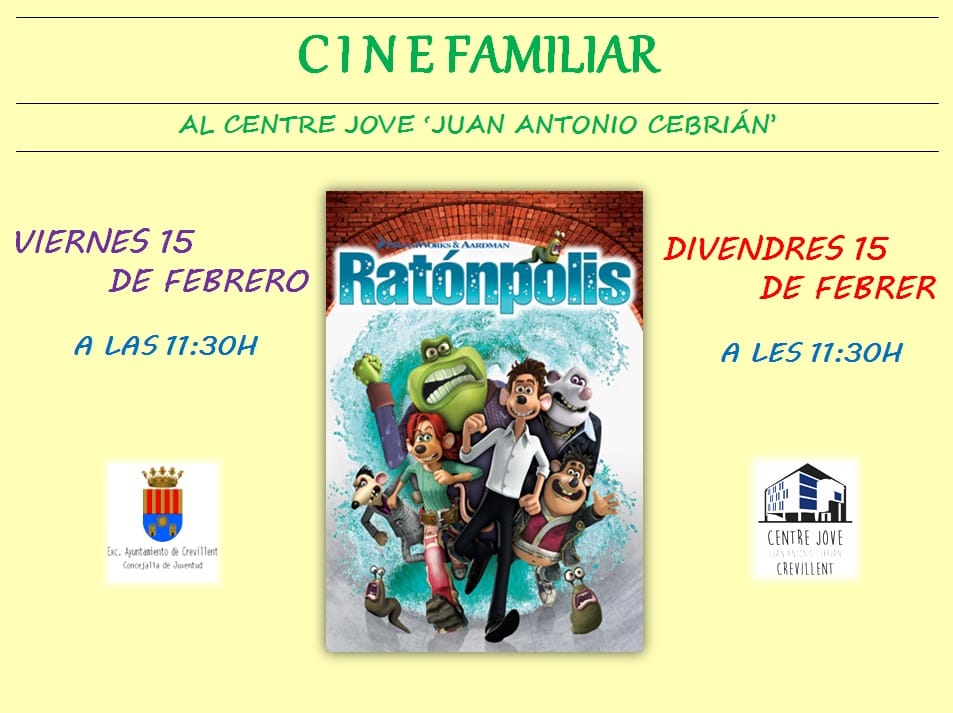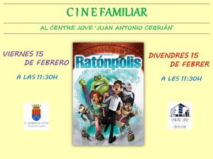 A continuación, dará comienzo la sesión de cine en familia en la que se proyectará la película ‘Ratonpolis’ a las 11:30h para todos los públicos.