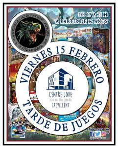 Por otro lado, en estas jornadas lúdicas de mañana, participará La Asociación de Juegos de Estrategia y Fantasía con unos talleres de juegos de mesa dirigidos a jóvenes mayores de 12 años que se desarrollarán en el Centre Jove de 17.00 a 21.00 h .Con ellos se pretende potenciar las destrezas cognitivas, la imaginación y el ingenio.