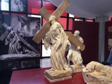 Del MUBAG procedían las obras más antiguas. Tallas en madera policromada que representaban a vírgenes, así como San Juan de Dios perteneciente a Salzillo o un Cristo Yacente en bronce de Carmelo Vicent Suria. De los fondos del Museo Monográfico Mariano Benlliure han estado expuestas obras como la Virgen del Carmen, una pareja de angelitos del Panteón de los Duques de Denia o el paso procesional de La Redención de Zamora. Además, los asistentes han podido visionar un video realizado por el crevillentino Roque Ortíz, en el que se explicaba la exposición.