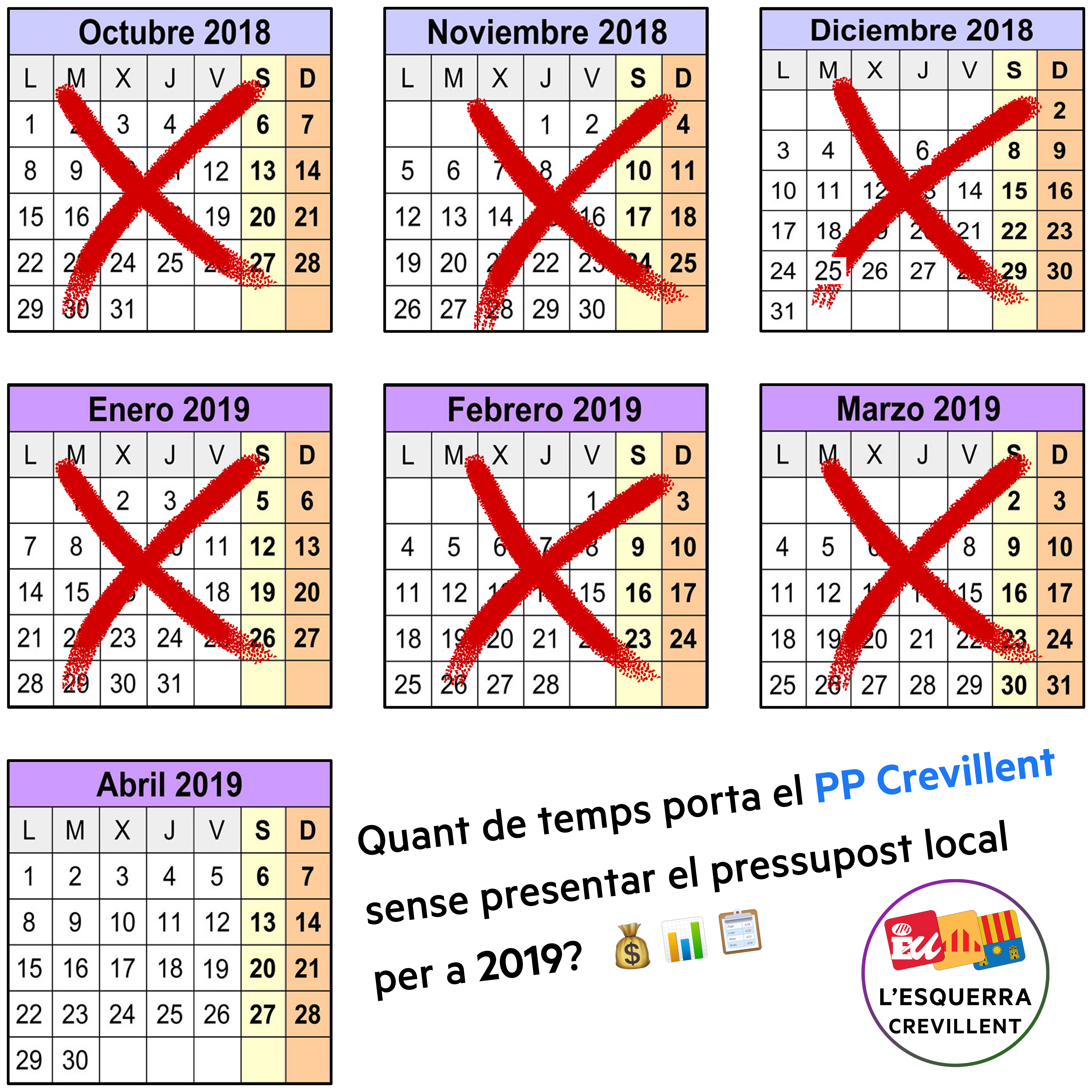L’Esquerra també ha volgut remarcar tal com marca la llei si s’ha de començar a trametre en octubre això fa un total de set mesos sense la presentació d’un primer projecte de pressupostos. Una prolongació de temps que segons L’Esquerra no es pot excusar ni en baixes laborals ni en negociacions de personal, ja que totes estes hagueren hagut de fer-se abans d’acabar l’any 2018.