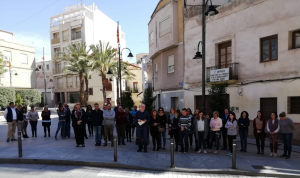 Crevillent (03/04/2019).- El Ayuntamiento de Crevillent ha guardado un minuto de silencio hoy miércoles 3 de abril, a las 12 horas, en la puerta de la Casa Consistorial para mostrar su rechazo frente al reciente asesinato machista sucedido en Rojales.
