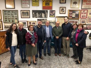 Crevillent, 10 d’abril. El candidat a l’Alcaldia, José Manuel Penalva, al costat de membres de la candidatura de Compromís per Crevillent que han resultat triats en el procés de primàries obertes, s’han reunit recentment amb la directiva de l’Orfeó Crevillentí, agrupació que engloba varis dels cors crevillentins.