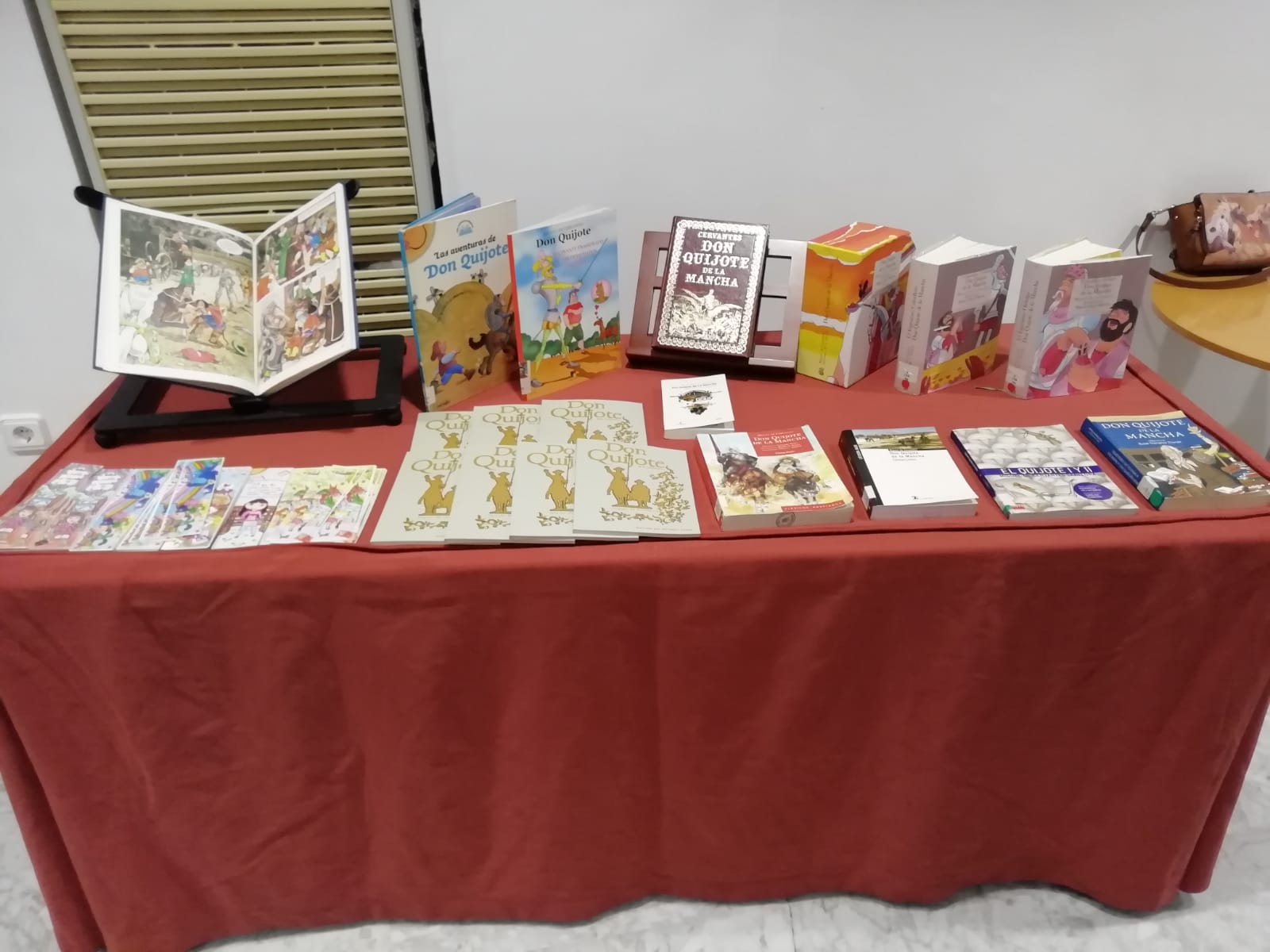 Además, en la misma sala se ha instalado una pequeña exposición de ejemplares de Don Quijote de distintas épocas, contando con ejemplares antiguos y algunos más modernos.