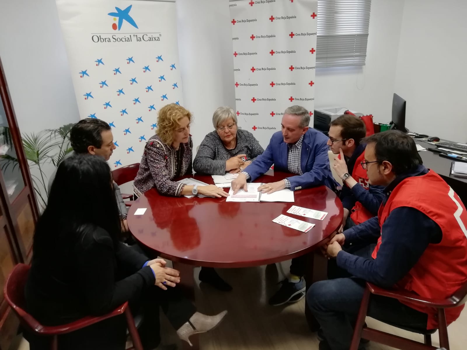 La edil de Bienestar Social, Juana Guirao, reunió a la directora del área de CaixaBank y representante de la Fundación Obra Social “la Caixa”, Teresa Martínez, que acudía acompañada de los representantes de las oficinas de CaixaBank en Crevillent. También estuvieron presentes el presidente de Cruz Roja Crevillent, Francisco Galvañ, el técnico local de Cruz Roja y el técnico de empleo, Alejandro Marcos, que fue el encargado de explicar en qué consiste el “Proyecto de activación y acompañamiento a personas afectadas por la crisis” y hacer un pequeño balance de la Memoria 2018.