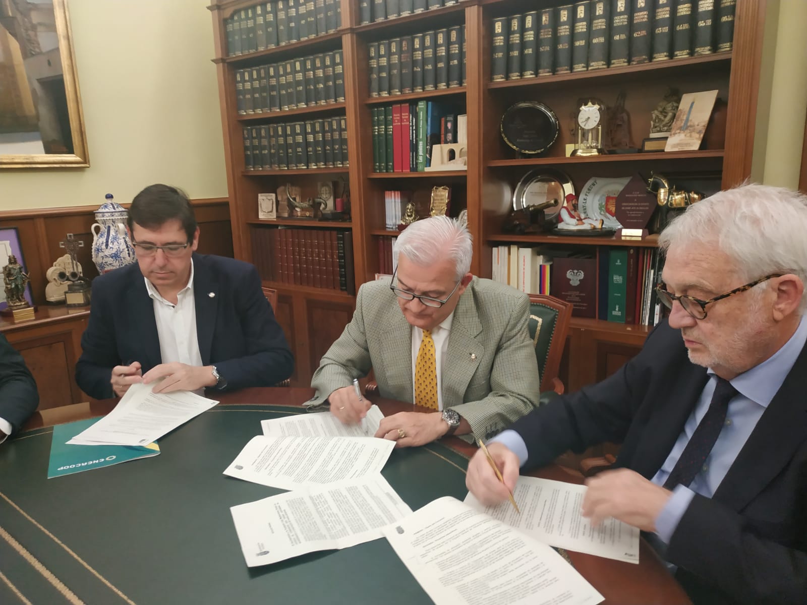 Crevillent (10/06/2019).- El Ayuntamiento de Crevillent, Cooperativa Eléctrica “San Francisco de Asís”  y la Fundación Caja Mediterráneo han firmado esta mañana un convenio de colaboración para la realización conjunta en el CEMA Los Molinos de actividades de divulgación, formación, sensibilización y conservación del medio ambiente. El acuerdo ha sido suscrito por el Alcalde César Augusto Asencio, el presidente de la Fundación Caja Mediterráneo Luis Manuel Boyer Cantó y el presidente de Cooperativa Eléctrica Benéfica “San Francisco de Asís”, Guillermo Belso Candela.